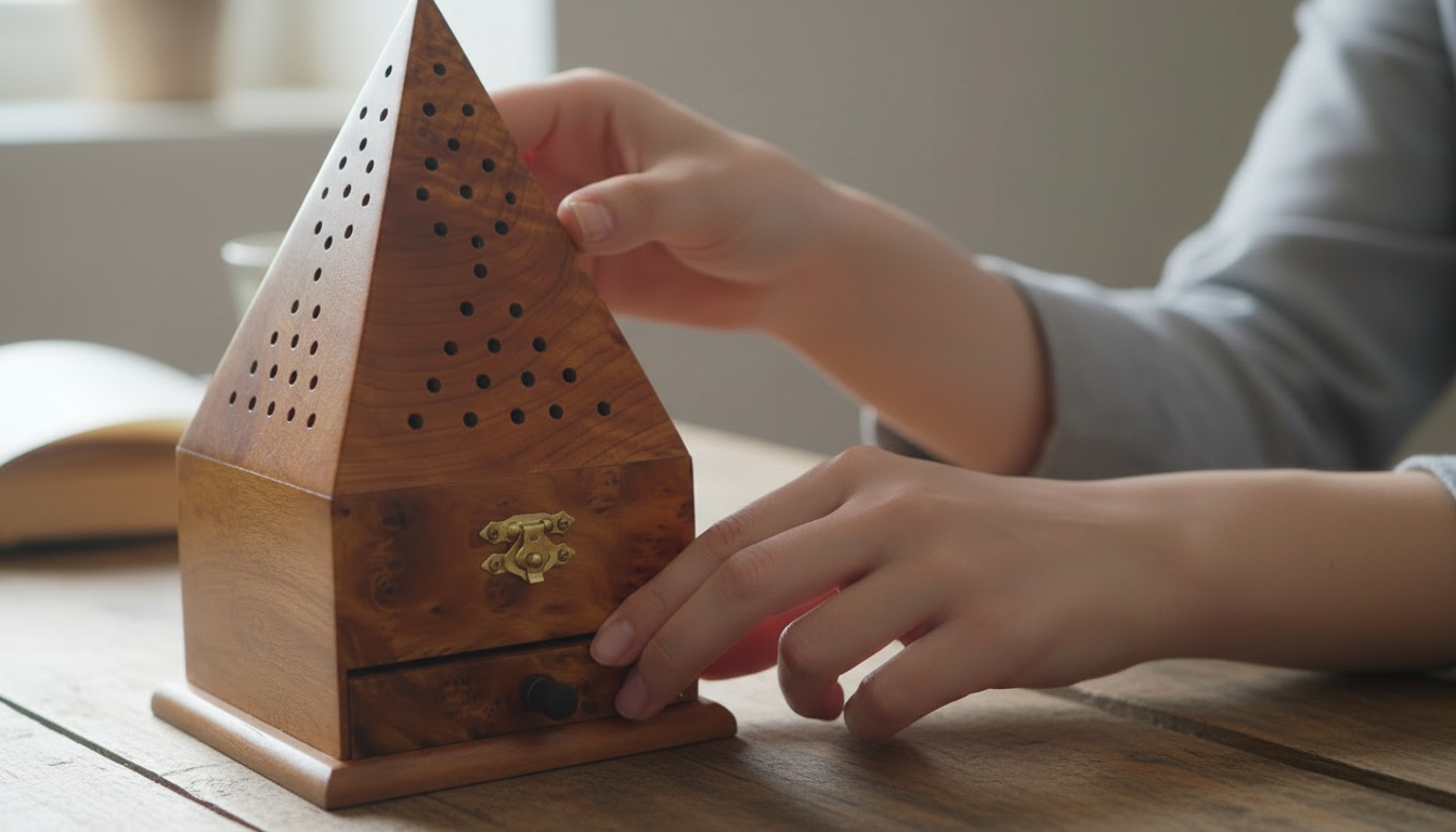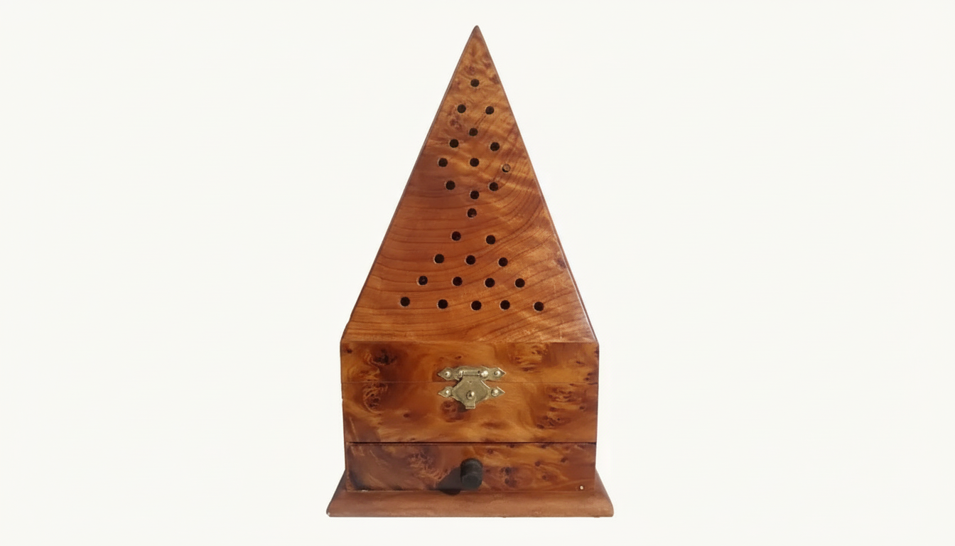 Each piece is shaped by skilled artisans, revealing unique wood grain patterns that make every burner one of a kind. Designed with precision-cut ventilation holes, it allows fragrant smoke to gently diffuse, creating a calming and mystical atmosphere.