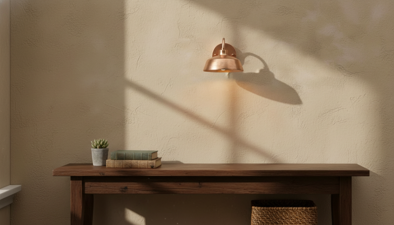Bring warmth and character to your space with this modern copper wall light, designed to create a soft and inviting atmosphere.